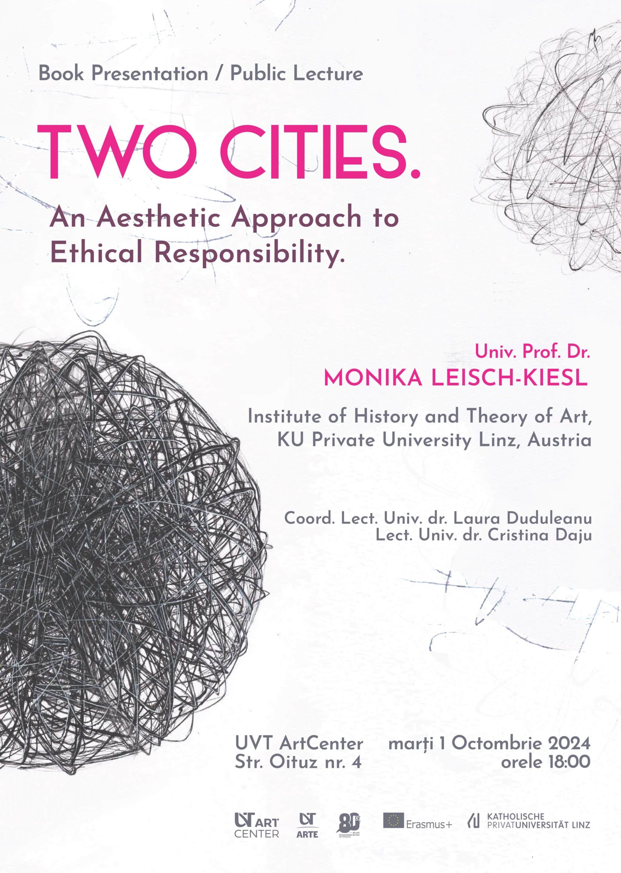 LECTURE: TWO CITIES. An Aesthetic Approach to Ethical Responsibility. An insight into a forthcoming book. Moderation: Laura Duduleanu, Christina Dajo, UVT Faculty of Arts and Design, Timisoara UVT Art Center / Galeria cu Platani, October 1, 2024